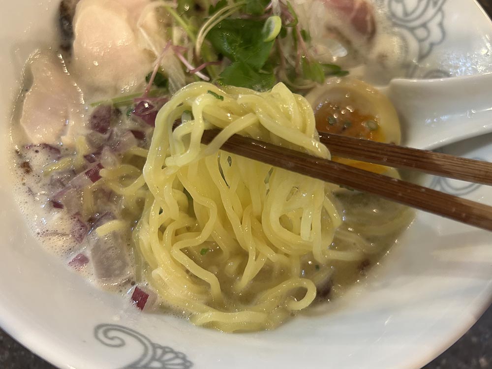 麺は中太のちぢれで、つるつる。東京の菅野製麺というところの麺を使っているようですね。