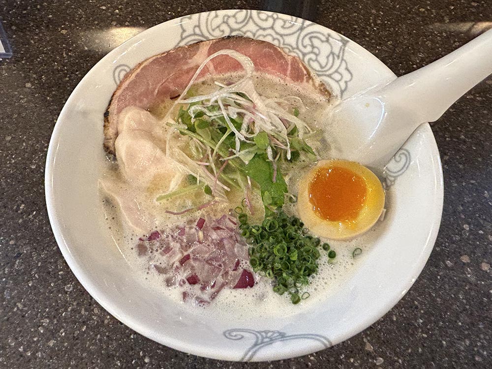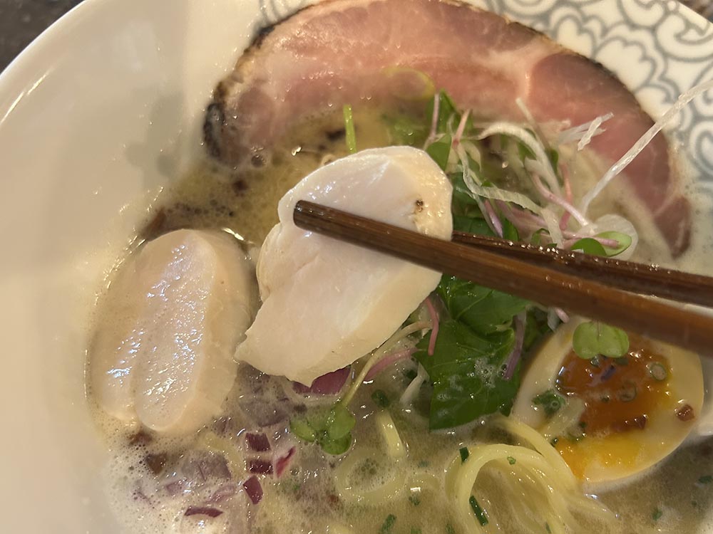 25年12/18オープン!豚、鶏のチャーシューに味玉が入って950円。「熾火」の鶏白湯塩ラーメン