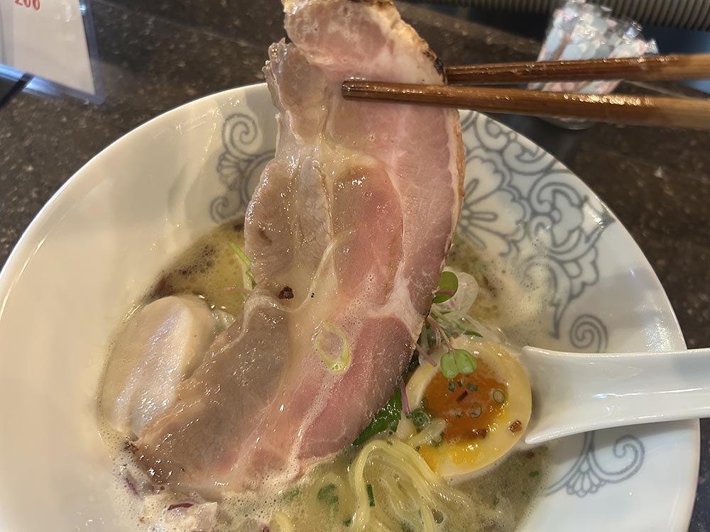 さらに、でかいチャーシューも入っています。こちらも低温調理でしっとり。