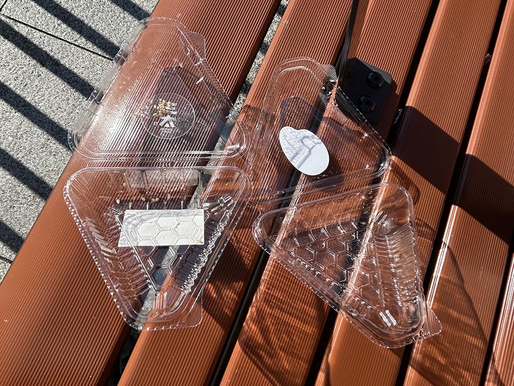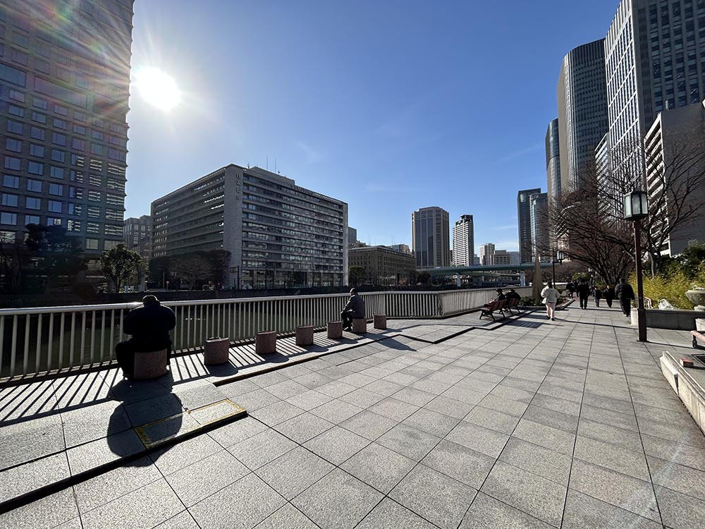 事務所に戻って食べようかと思ったのですが、中之島を通ったら天気がよくて暖かいので、たくさんの人が休憩しています。