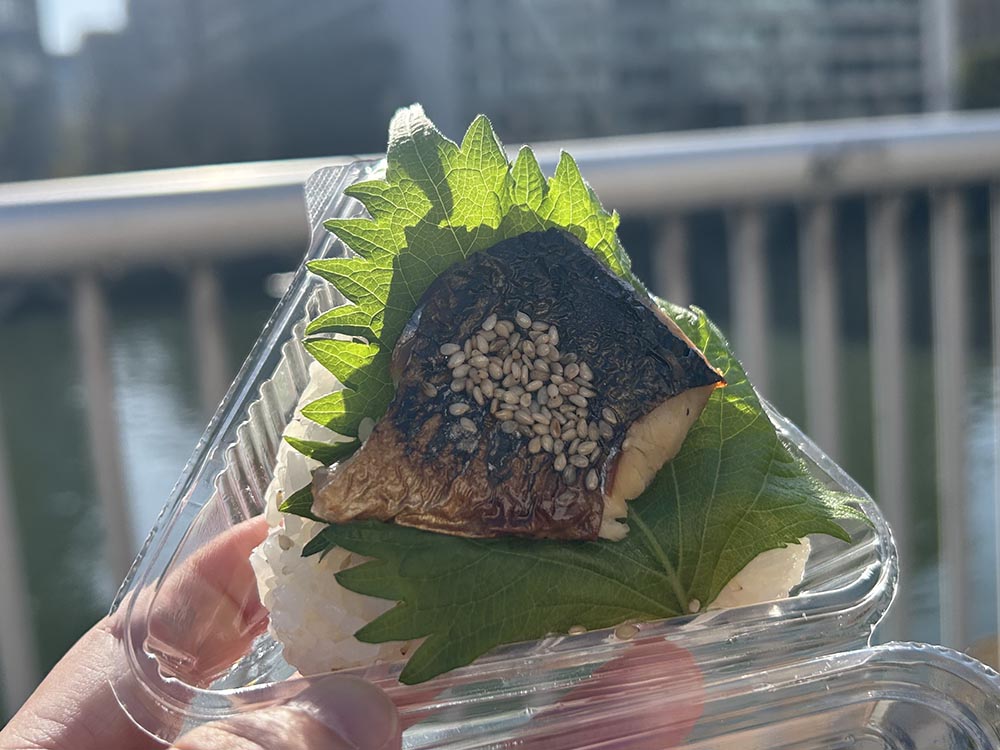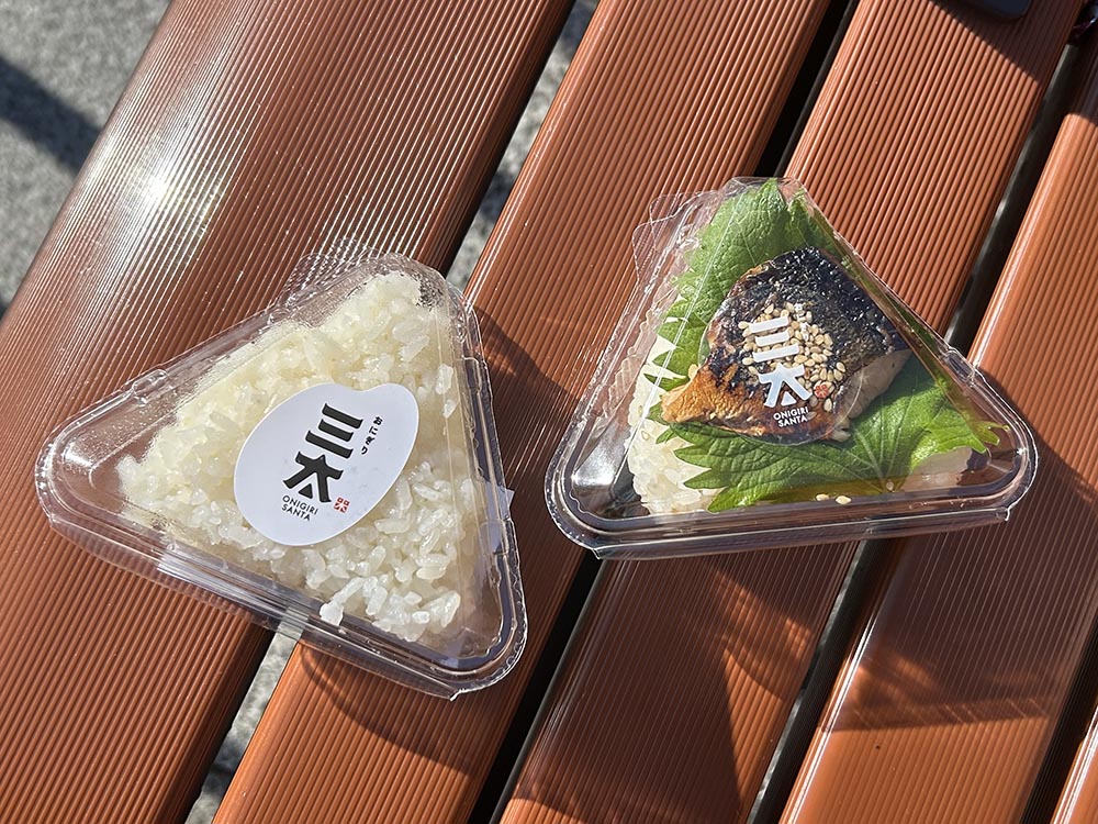 阿波座にオープンした「にぎり三太」で、こだわりの塩むすびとサバと大葉のおにぎりを買って食べました。