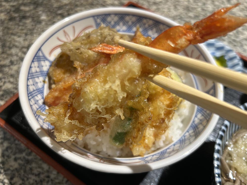 天丼は1000円ですが、そばがついた天丼セット1300円にしました。