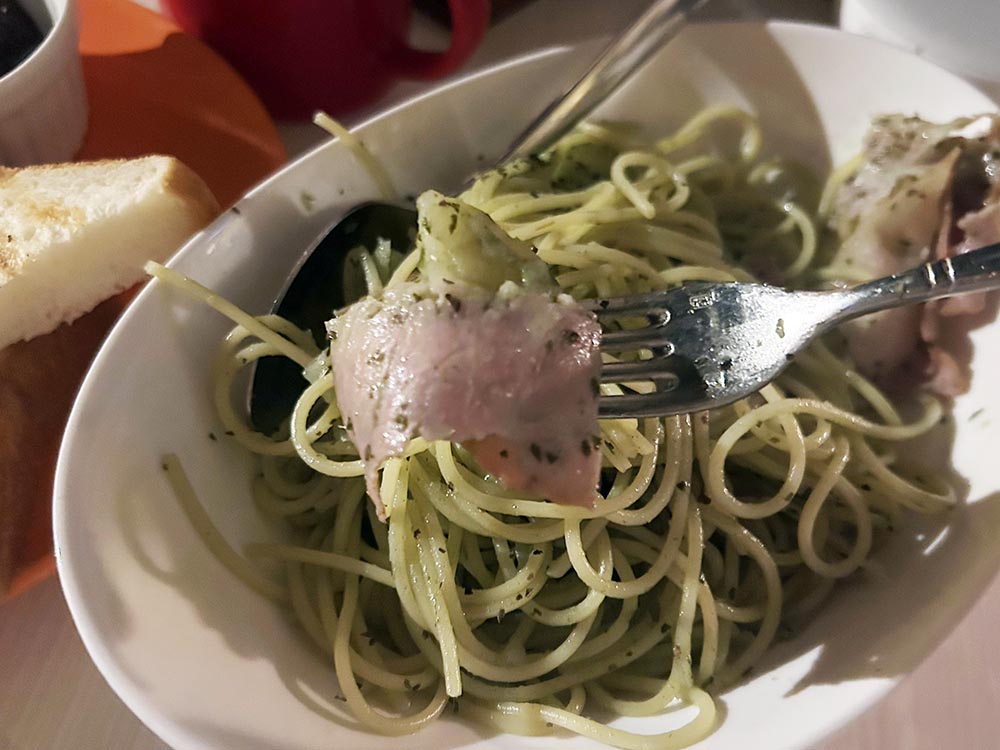 パスタは思っていた以上に量が多い。