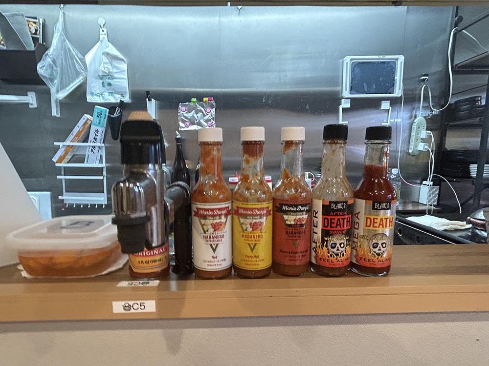 こちらの店主さん、もしかしたら辛いの好きなのか、デスソースなど辛いソースも揃っています。
