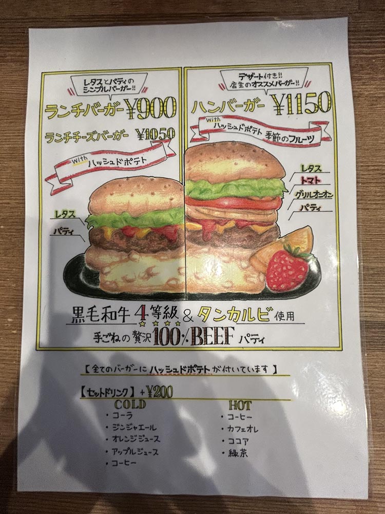 私は、ランチバーガー900円とコーラ200円を注文。