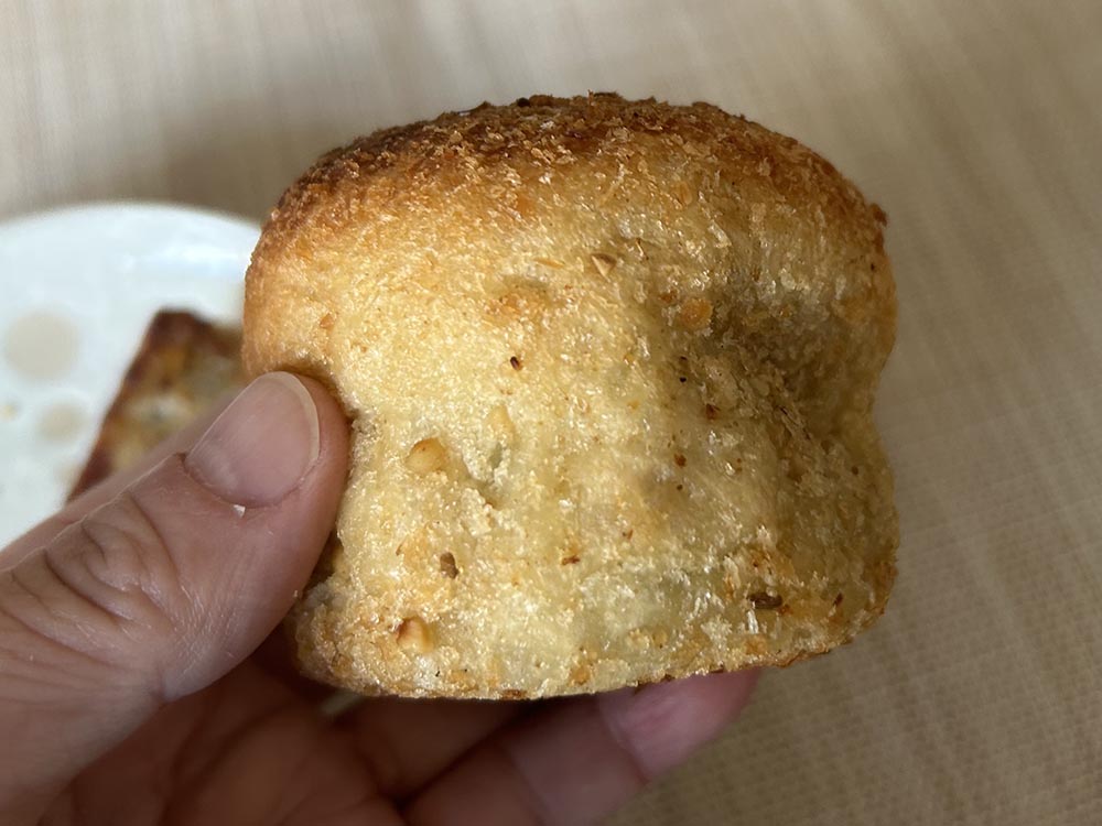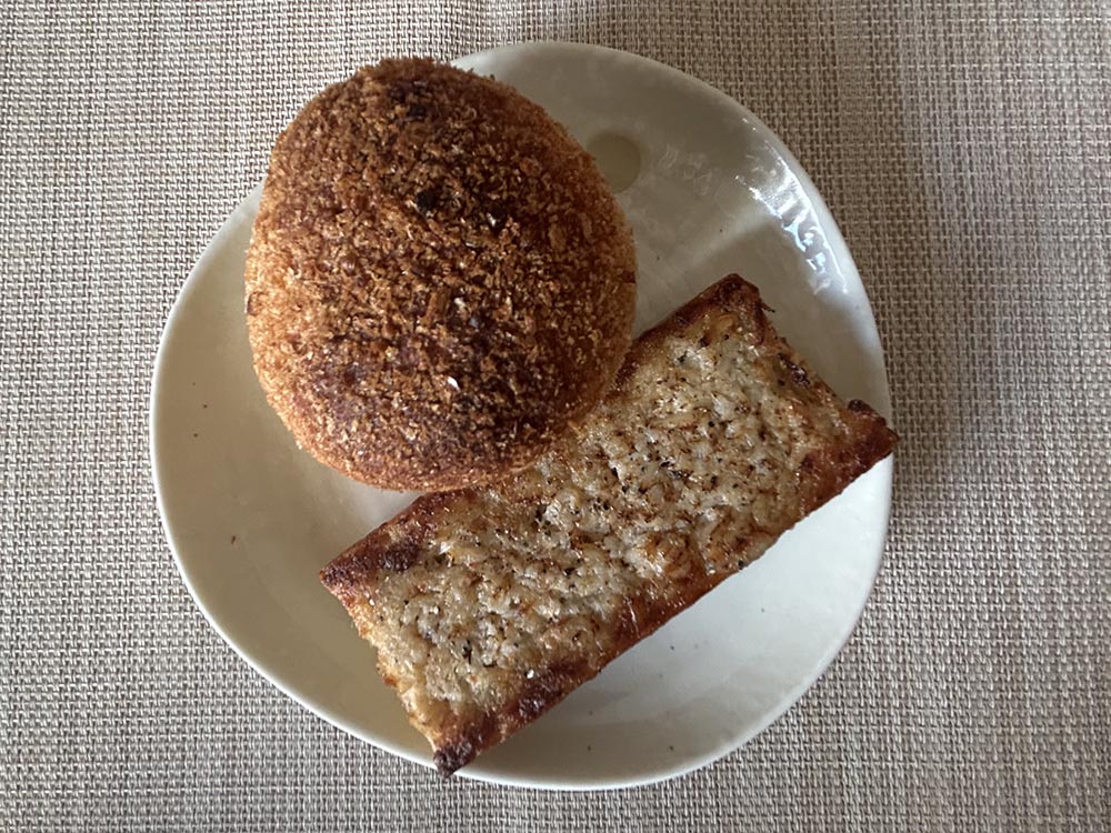 上の丸いのが角煮カレー、下の細長いのがしらすバターフランスです。