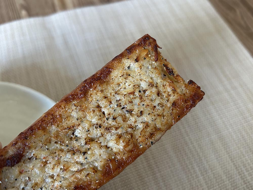 しらすバターフランスは、ガーリックが効いたバターとしらすがフランスパンの上に塗られています。