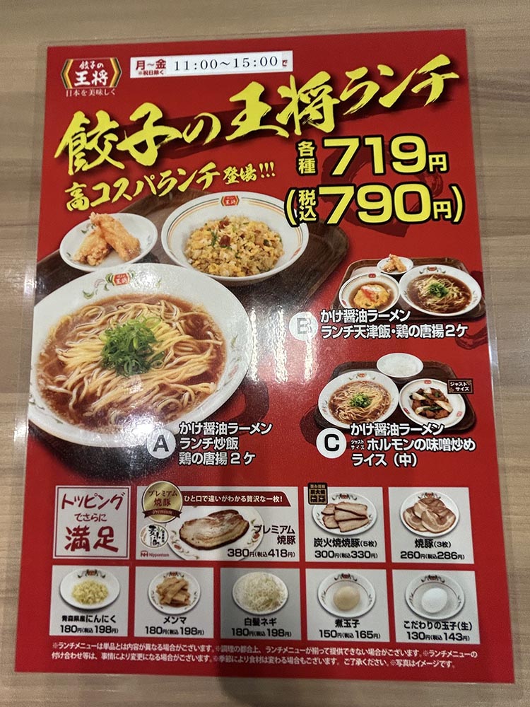 プロたちが認めた「王将」の極王餃子の王将ラーメン