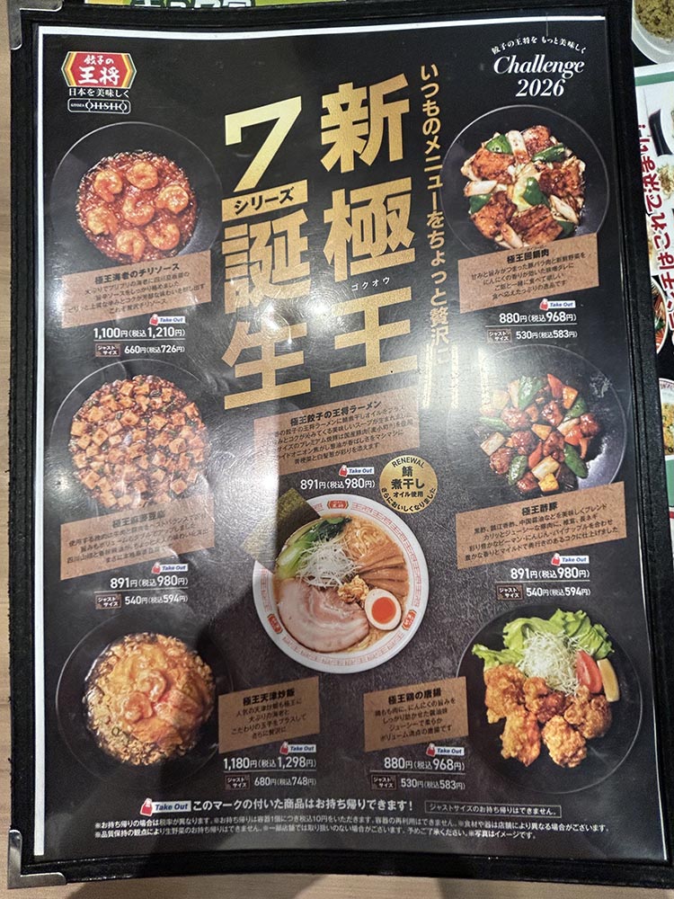 これまで炒飯や天津飯など一部のメニューにワンランク上の極王シリーズがあったのですが、その極王シリーズが2026年からさらに7品追加されたとのことで、そのなかの一つ、「極王餃子の王将ラーメン」というのが、審査委員の料理人7人全員がおいしいと絶賛していました。