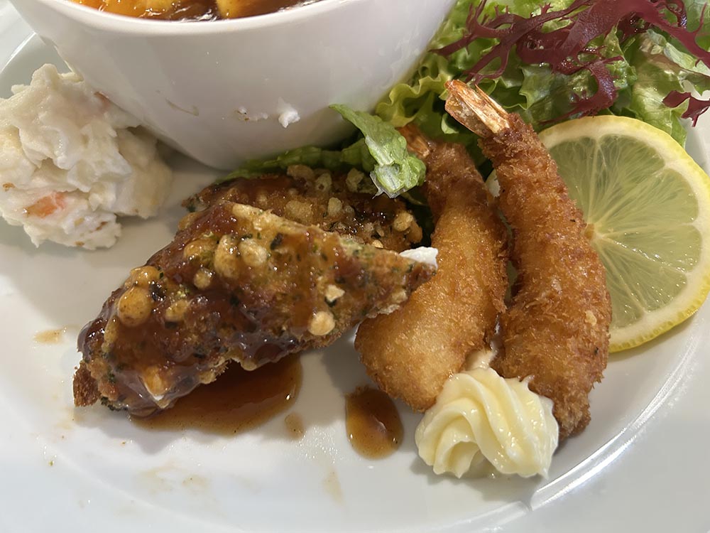 ヒトクチカツ、エビフライの組み合わせ。たまりませんね!