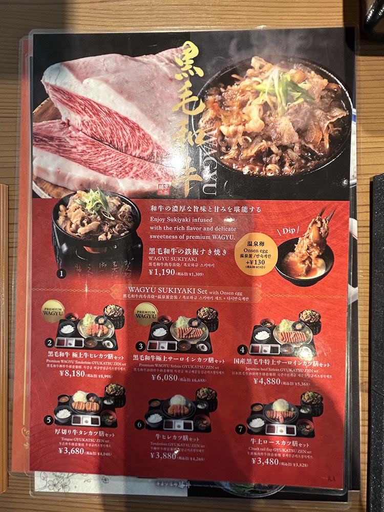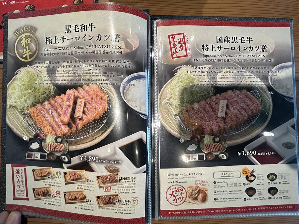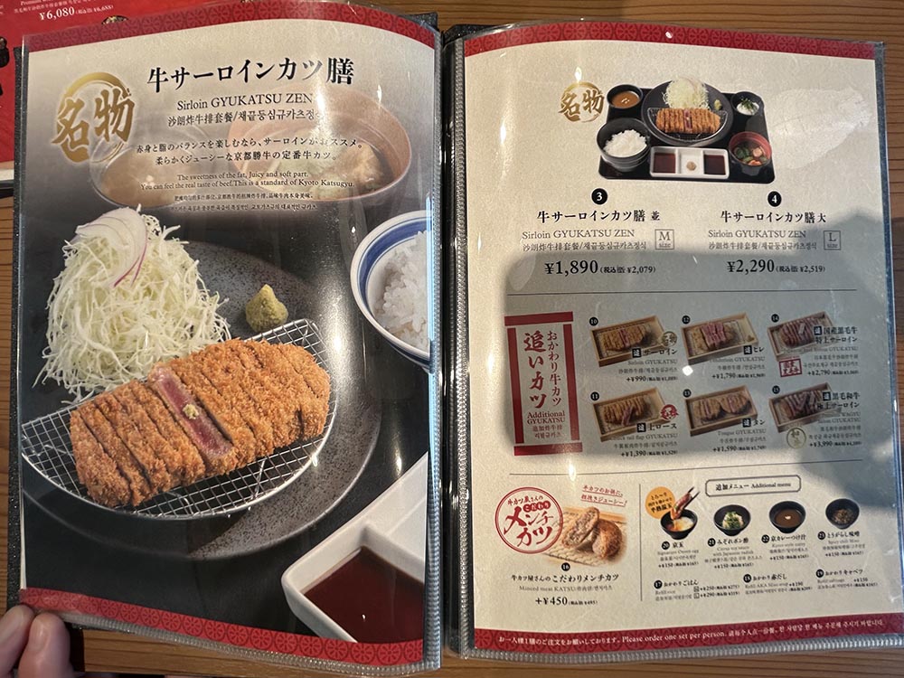 私は一番オーソドックスな、牛サーロインカツ膳の並1,890(税込2,079)円にします。