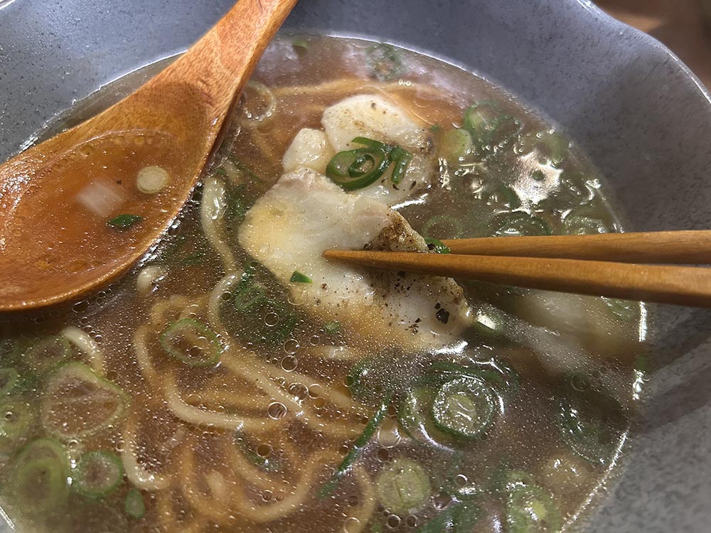 チャーシューがわりに、タイの身も入っています。