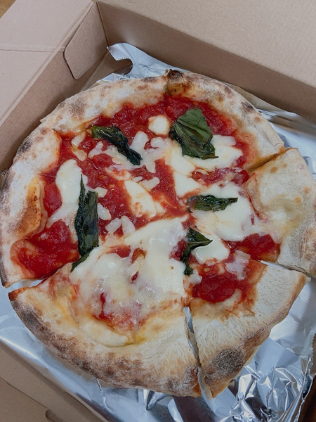 いただきまーす。石窯で焼いた生地に酸味が絶妙な感じのトマトソース、一挙に食べ切ってしまいました。おいしかった。